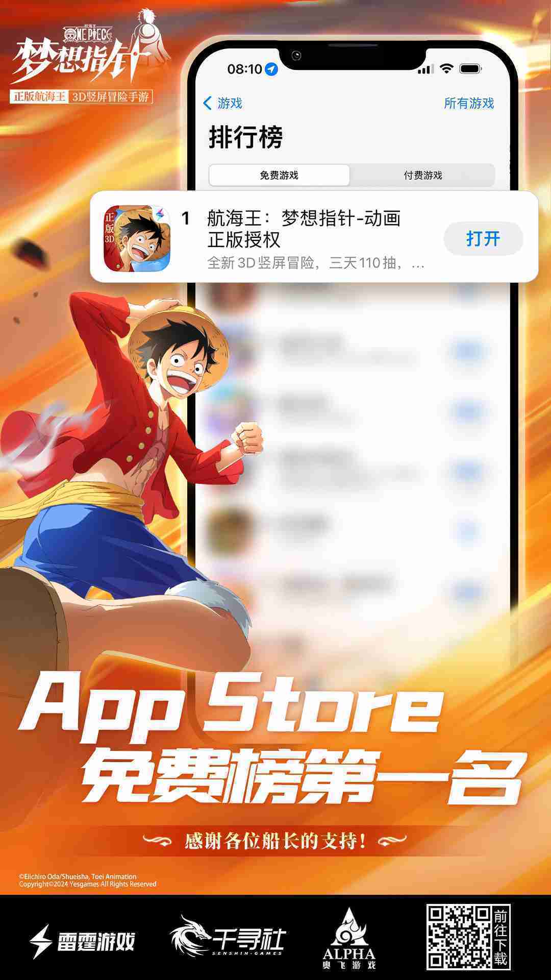 产品新闻 《航海王:::梦想指针》登顶App Store免费榜,,,,公测福利汇总!!