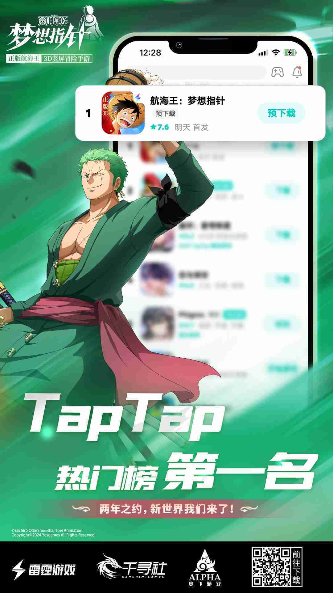 4月1日,,,手游《航海王::::梦想指针》正式公测,,,上线仅2小时不到就登上了App Store免费榜Top1,,与TapTap热门榜第一。。。